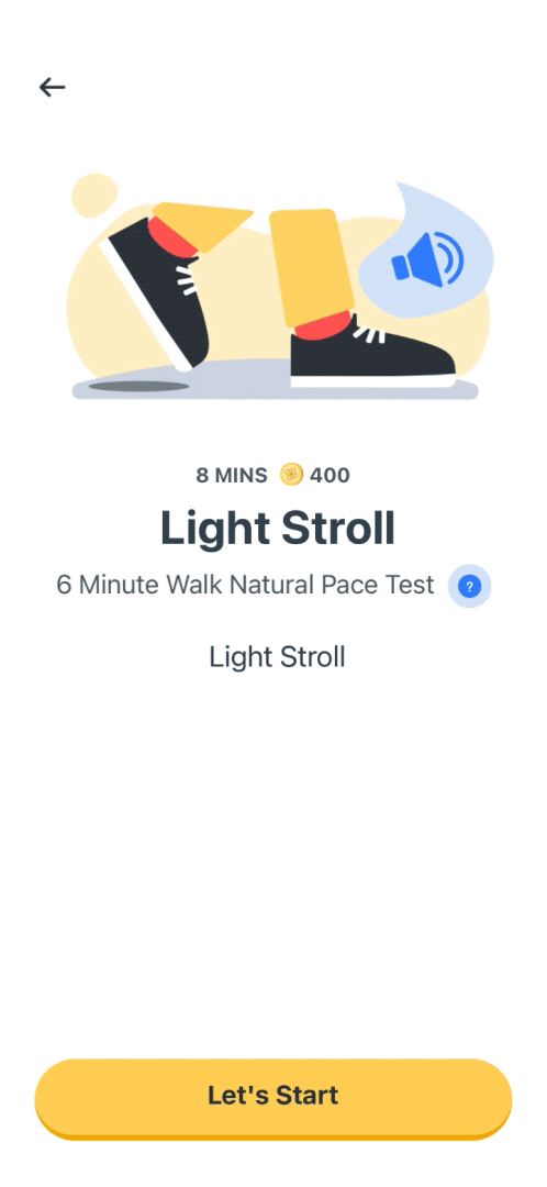 Assesses walking endurance and speed. Users walk outdoors with their smartphone for 6 minutes, aiming to cover the maximum distance.