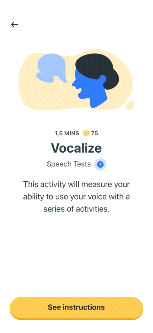 Evaluates oral motor speech ability. Users are asked to hold a note and repeat a polysyllabic word as many times as possible.