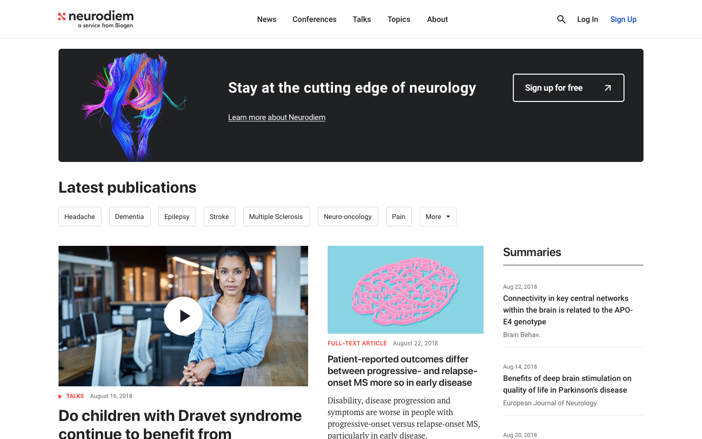 Biogen, a pharmaceutical company specializing in neuroscience, created BHS (Biogen Healthcare Solution) to deliver innovative digital solutions for patients with neurological diseases and healthcare professionals. One of these solutions is Neurodiem, a website dedicated to neurologists.