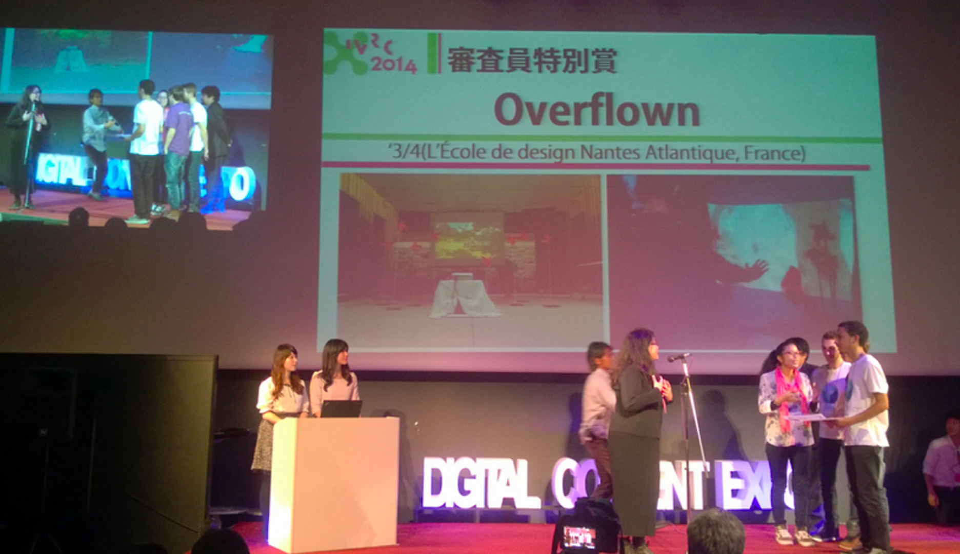 In October 2014, we presented Overflown at the IVRC (International collegiate Virtual Reality Contest) - which was part of the Digital Content Expo, in Tokyo - and it won the Special Recognition Award.