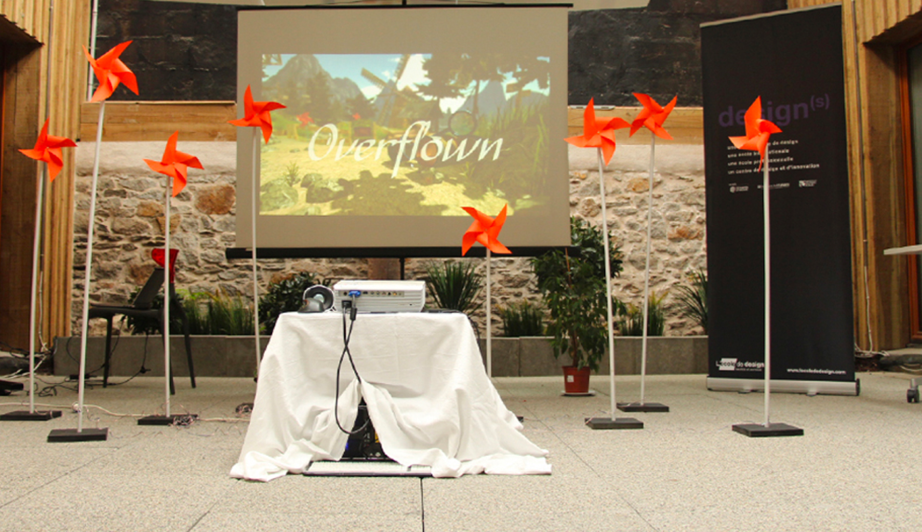 Overflown was initially made for the Virtual Fantasy competition at the Laval Virtual exhibition, where it received the award for the best graphics.